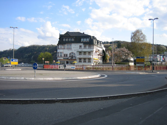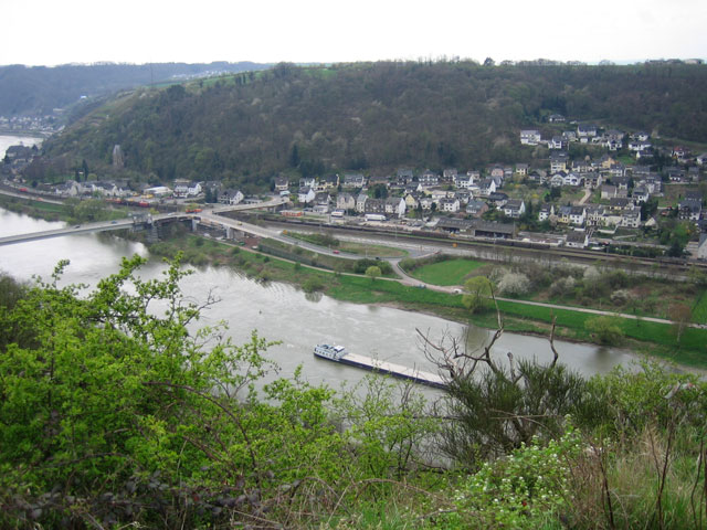 Ajoimme Koblenziin autobahnia pitkin, Moselin kohdalla vaihdoimme jokea myötäilevälle pikkutielle. Nyt alkoi reissulta löytyä sitä mitä tulimme hakemaan, eli mahtavia maisemia. Aurinko paistoi ja ilma oli lämmin, +19. Pysähdyimme heti P-paikalle ottamaan kuvia. Laskeuduimme alas laaksoon, ajoimme jokea seuraavaa pikkutietä tutustuen samalla laakson kyliin.