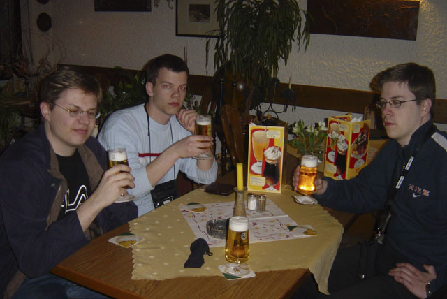 Päivä 3, tiistai, 12.04.2005Heräsimme siinä kahdeksan maissa aamulla ja kävästiin pikaisesti suihkussa. Lähdimme katsastamaan Mannheimin kaupunkia. Otettiin valokuvia ja söimme dönerit. Döner on jokin turkkilainen pikaruoka, vaalean ohuen leivän välissä on kebablihaa, pizzasalaattia ja jogurttikastiketta. Lidlistä haimme automatkalle juomista ja evästä.