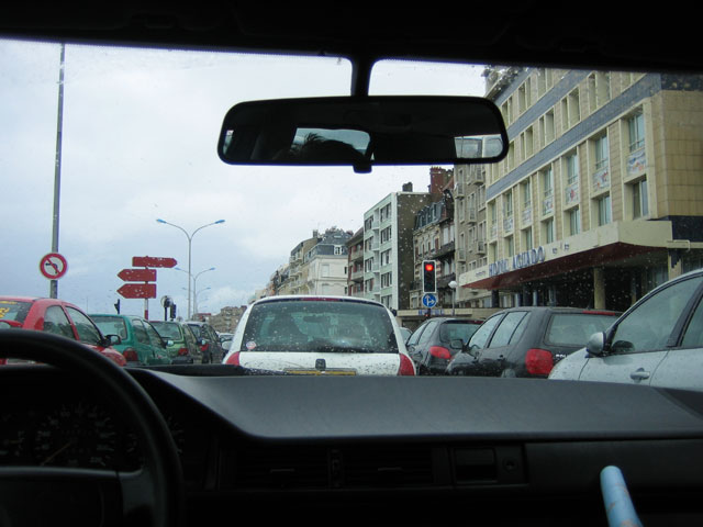 Ennen viittä olimme Dieppessä, tarkoitus oli sompailla keskustassa kävellen, mutta jälleen kerran keskustan liikenne sai meidät ohittamaan kaupungin. Siellä oli ihan mahdoton ruuhka, ei alettu edes etsimään parkkipaikkaa. Ranskassa kyllä parkkeerataan autot lievästi sanottuna hassusti, eli ihan mihin huvittaa. Esimerkiksi liikenteenjakajan koroke on hyvä parkkipaikka. Kaikki parkkiruudut on lisäksi suunniteltu pikku-pösöille ja -relluille, että tiukkaa tekee sovittaa saksalaista maantielaivaa niihin.