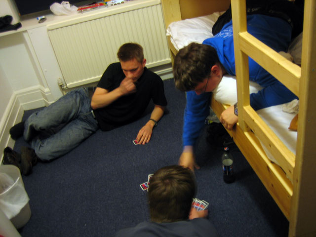 Museosta lähdimme takaisin hostellille hakemaan kamppeita, ja sitten rautatieasemalle ja suoraan Lontooseen vievään junaan. Juna lähti klo 15, Paddingtonin asemalle saavuimme alle tunnissa. Paddingtonilta lähdimme lampsimaan kohti Piccadilly Circusta. Oxford Street oli ihan täynnä ihmisiä. Hostelli löytyi helposti, Matti ja Simohan ovat olleet aikaisemminkin samassa paikassa. Neljän hengen huone oli todella hyvä. Kävimme suihkussa ennen kaupungille lähtöä. Vesi oli jääkylmää. Lähdimme ulos, kävimme syömässä Burger Kingillä. Sieltä suuntasimme Midas Touch -baariin. Otimme kaikki tuopilliset Carlingia, Matti sai hostellin kupongilla mansikkashotin. Paikka kun on jotenkin kytköksissä hostelliin. Sitten poikkesimme kioskilla hakemassa purtavaa ja juotavaa iltapalaksi. Palasimme hostellille. Tarkoituksena oli mennä pelaamaan korttia yleisiin tiloihin, mutta se oli aivan täynnä porukkaa. Palasimme huoneeseemme ja pelasimme siellä pari peliä. Nukkumaan menimme kymmenen kieppeissä.